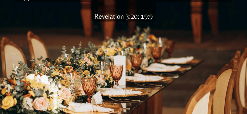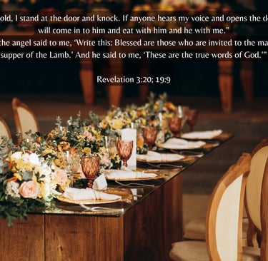 9 "And the angel said to me, 'Write this: Blessed are those who are invited to the marriage supper of the Lamb.' And he said to me, 'These are the true words of God.'"